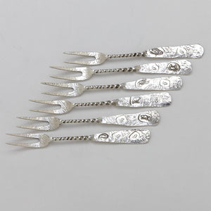 Gorham Antique Sterling Silver Rare Hamburg Oyster Forks, Providence, RI, c. 1880