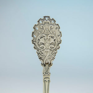 This magnificent server is marked 'BAILEY & Co' along with a star. The tongs measure 9 inches long, weigh 5.05 troy ounces, have never been monogrammed and are in excellent antique condition.