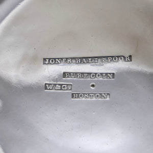 Jones, Ball & Poor was Boston's leading jeweler during this period; the partnership ultimately became Shreve, Crump & Low in 1869. Silver bearing the Jones, Ball, and Poor mark, as well as the actual maker's marks on items sold by the firm, is very uncommon. Boston items from the early 19th century are rarely found with maker's marks. It was traditional for both silver and furniture to be marked only by the retailer; this is why attributions of furniture and silver from this period can be so challenging.